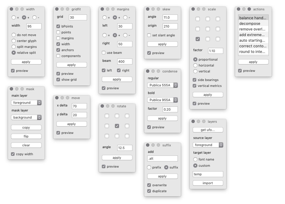 Modular toolkit for type design and font production work in RoboFont 3.